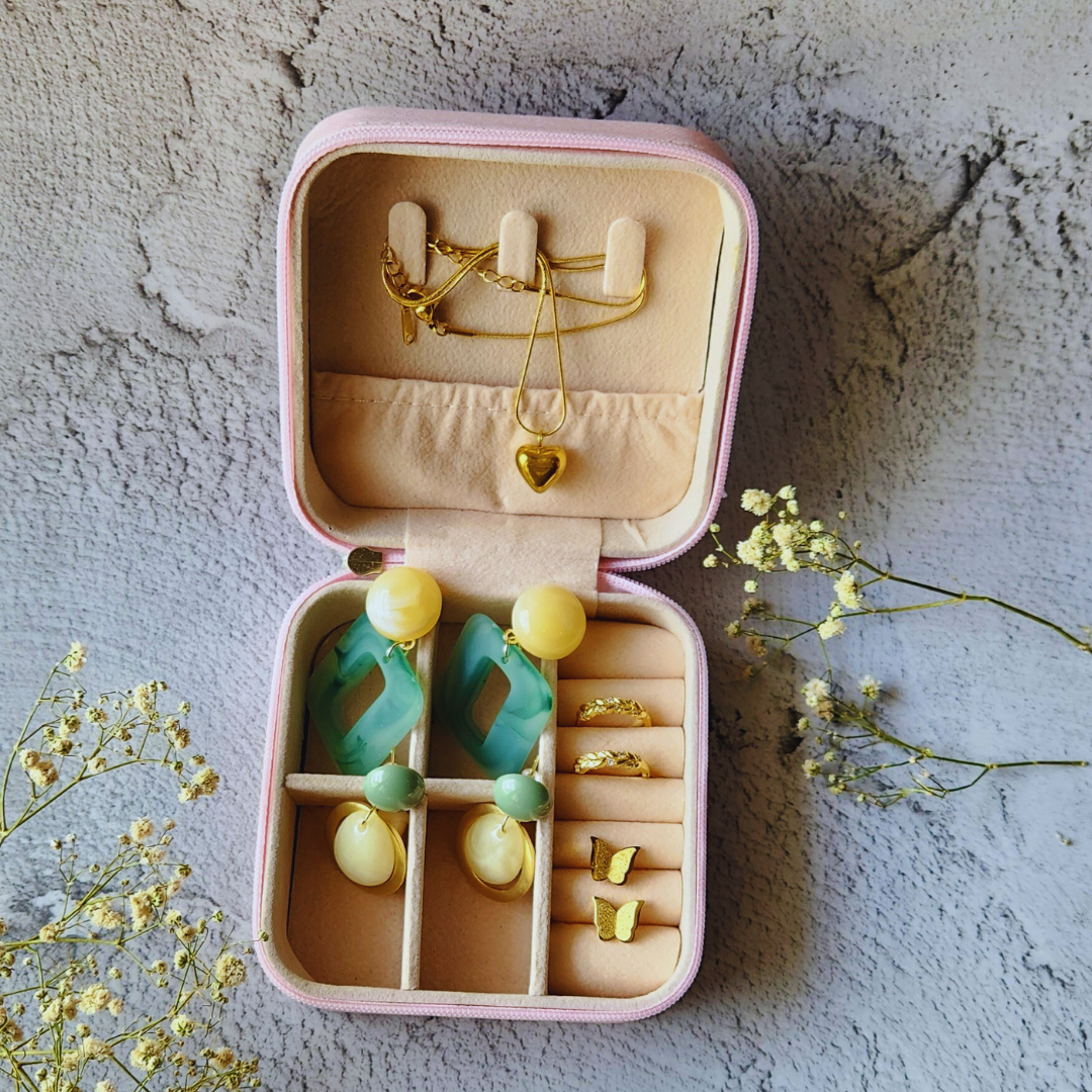 Glamorous Ties Hamper- A Combination of 4 Earrings and 1 Necklace in a Jewelry Box.